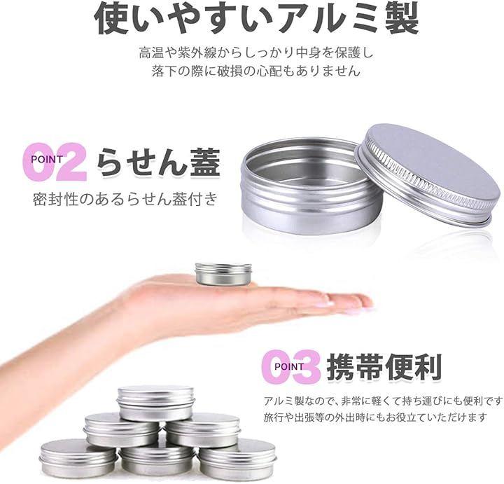 自家製のクリーム、ローション、リップ、軟膏、ネイルバーム、ワックス、ミニパウダー等の小分けや保存、詰替用に便利です。