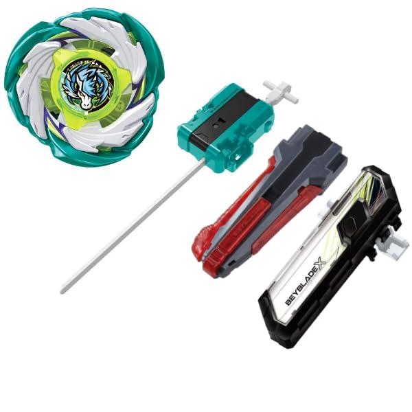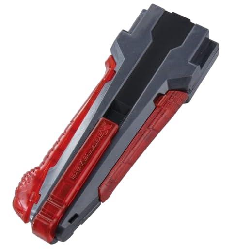 【CX-07】ブレードが3パーツに分解可能になり、性能をカスタマイズできる カスタムラインのベイ。 ロングワインダーランチャー同梱のスターター。 メタルが塗装され上下に重なった3枚刃により重厚な打撃を与える ブレードと、回転速度に応じて軸先が変形するラチェット一体型 ビットを組み合わせることでバトル後半でも再加速による強力な 攻撃を実現したベイ。