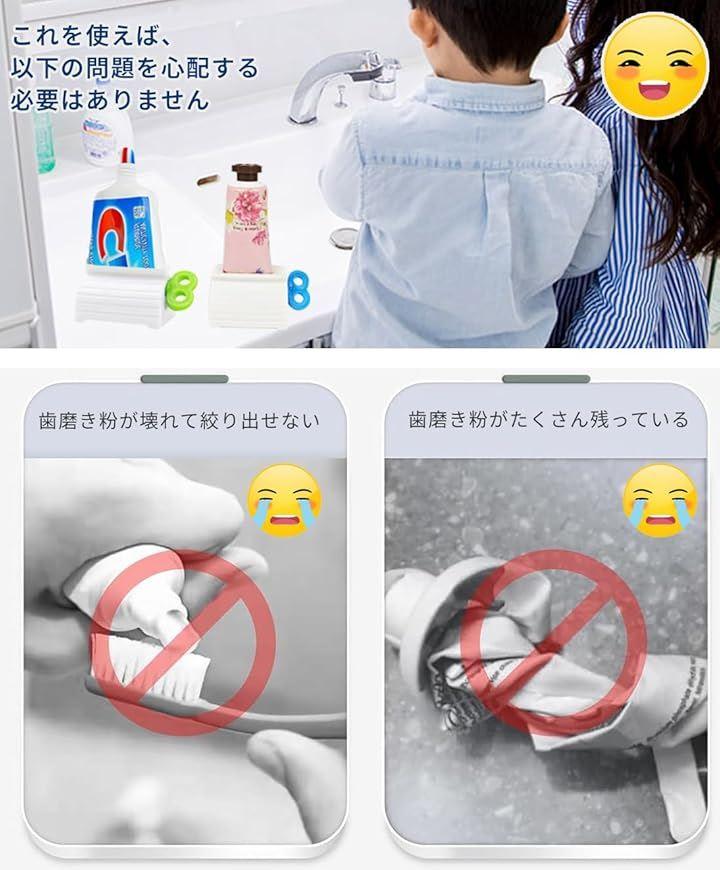 YOOTASIOの歯磨き粉ディスペンサーは、チューブを直立に保持し、整理整頓にも役立ちます。
