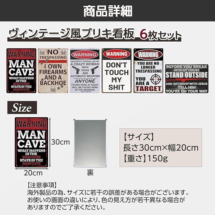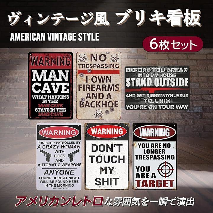 アメリカンレトロデザイン: おしゃれなアメリカンスタイルのブリキ看板6枚セット。