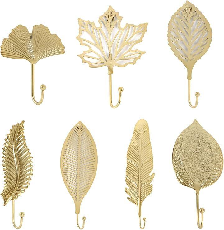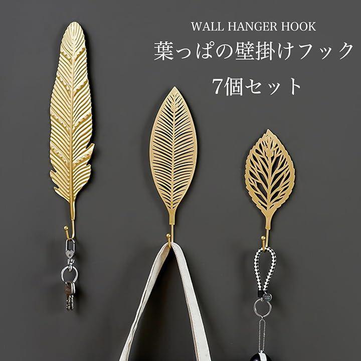 「商品説明」繊細なリーフデザインが美しい、ゴールドの壁掛けフック7個セットです。