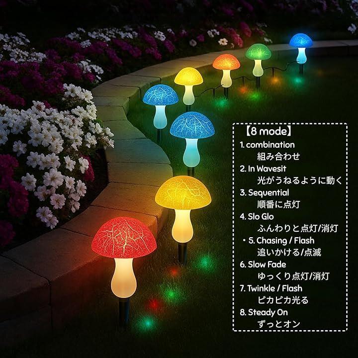 「エコフレンドリーな照明」このソーラーマッシュルームライトは、太陽光を利用して充電し、夜間に自動で点灯します。