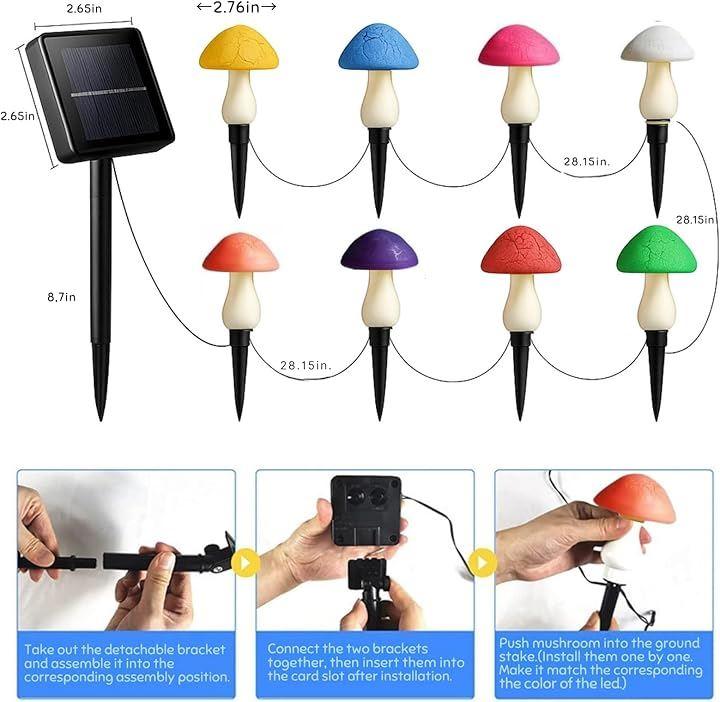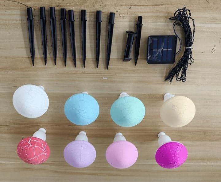 Set of 8 Multicolor Solar Mushroom Lights, Outdoor Garden Decoration, String LED Recessed Illumination, with Solar Panel, Energy Saving