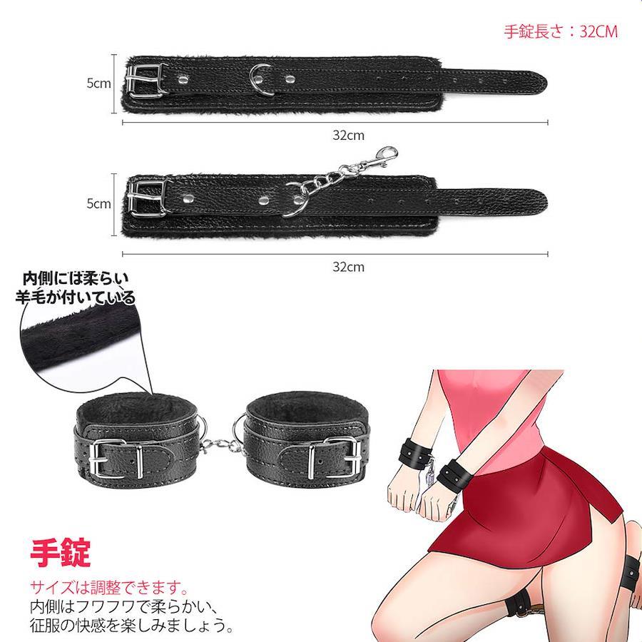 【セット内容】手錠*2 、アイマスク*1 (アイマスク:長さ:21.5 cm、幅:10 cm。手枷:長さ:32 cm、幅:5.2cm、チェーン:14 cm) 【手枷】良質なナイロンとPUレーザーを採用し、耐久性が強いです。内側にふわふわの羊毛が付いているので、肌を保護することができます。自由性溢れたリングフックはいろんな組み合わせができるので、楽しんでください。 【アイマスク】サテンの生地を採用し、柔らかく触り心地がいいです。目元への触感はとても柔らかいので、圧迫感や痛みが感じることなく、キッチリ視覚を奪うことができます。 【秘密な梱包】お客様のプライバシーを保護するため、本製品のパッケージは写真の説明がありません、外から中身がわからないよう厳重に梱包してお届けいたします。