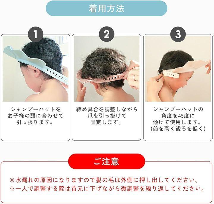 広めのつばで水の侵入を防ぎ、快適な洗髪を実現します。