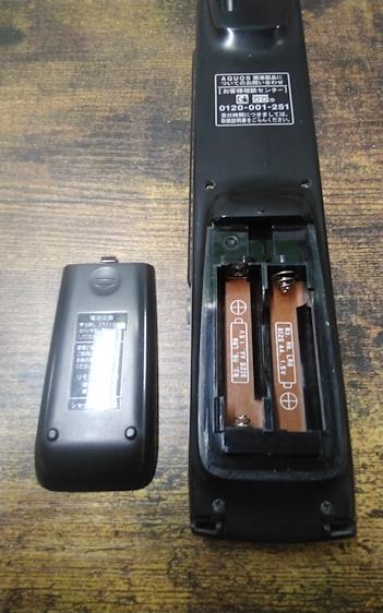 中古品です。単3電池2本必要です。通電確認済です。テレビリモコン本体に汚れ、キズ、色あせ、スレがあります。シャープのテレビリモコン、「AQUOS GA913WJSA」です。