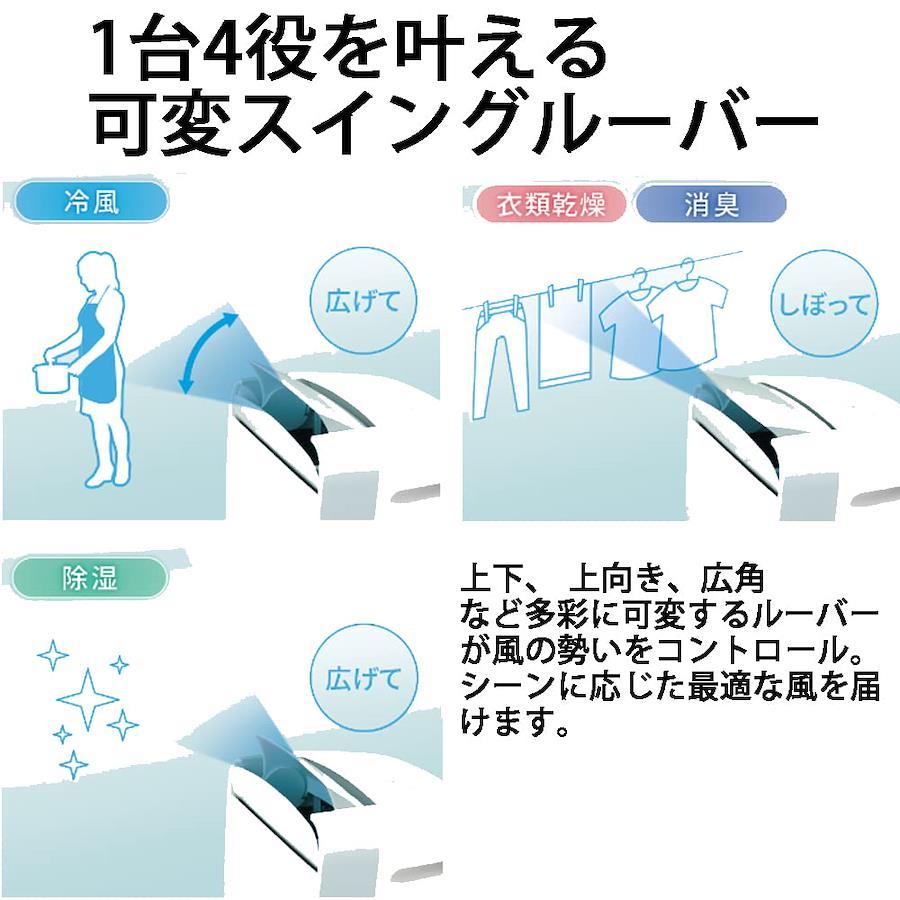 3営業日以内に発送≪新品未開封品≫:1台4役。除湿、衣類乾燥、消臭、冷風コンパクトクール。部屋干しのイヤな臭いを抑えて乾燥。お部屋をカラリと除湿。衣類やお部屋に付いた臭いも爽やかに。1台4役を叶える可変スイングルーバー。使いやすさにこだわった充実機能。本体にホースをつなげば、連続排水が可能に。排水タンクに溜まった水を捨てに行く手間が省けたり、外出中などの長時間運転にも応えます。;このアイテムのボルテージアレンジは100Vです。