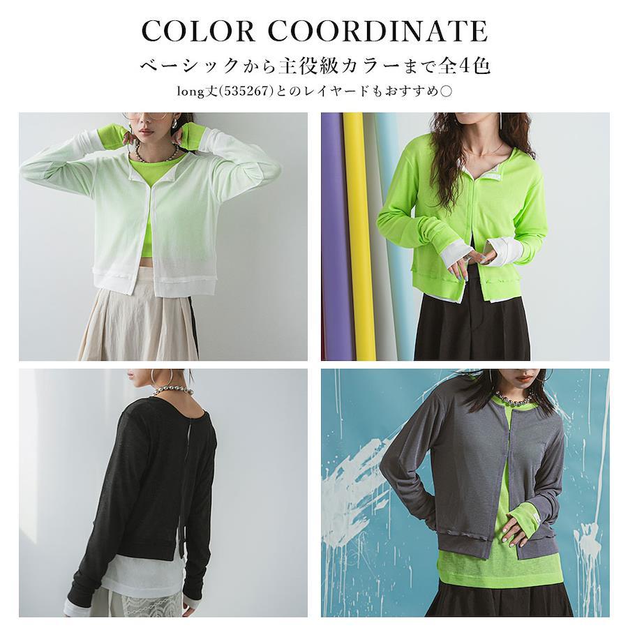 紫外線対策&オシャレ見えを叶えたカーディガンタイプ。プルオーバー/カーディガンの前後2way着用も可能○