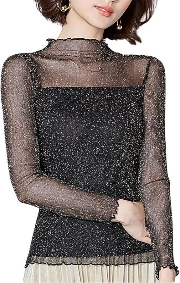そんなトップスに、生地の光沢感で上品な華やかさをプラス。セクシーな、肌の透け感にゴールドのラメでお洒落に。