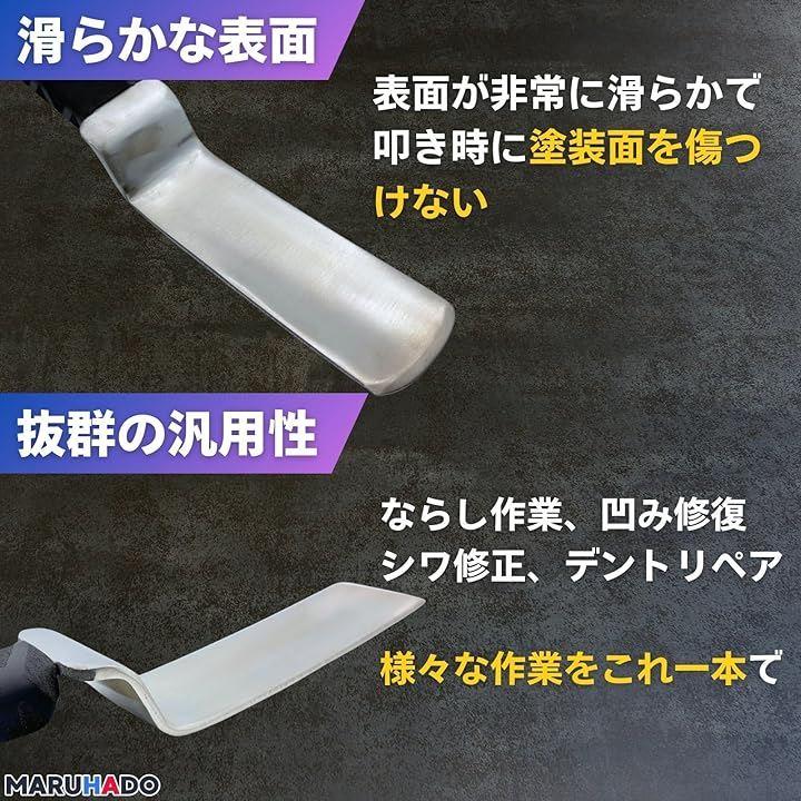 「多機能な補修能力」平面と曲面の両方に対応した板金ハンマーで、1本で様々な形状の凹みやシワに対応可能。