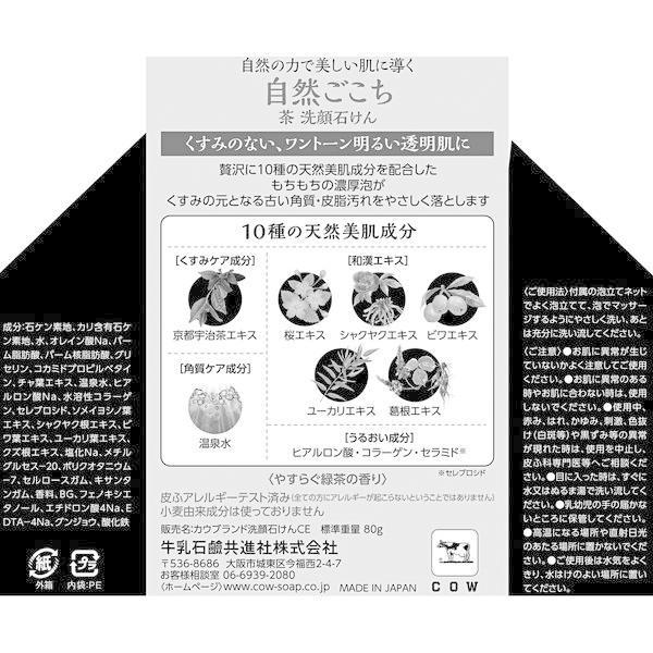 【成分】石ケン素地、カリ含有石ケン素地、水、 パーム脂肪酸、パーム核脂肪酸、パルミチン酸、コカミドプロピルベタイン、チャ葉エキス、ヒアルロン酸Na、水溶性コラーゲン、メロン胎座エキス、ソメイヨシノ葉エキス、シャクヤク根エキス、ビワ葉エキス、クズ根エキス、グルコシルセラミド、加水分解コンキオリン、ラウリン酸、ミリスチン酸、ステアリン酸、塩化Na、ポリクオタニウム-7、ポリクオタニウム-10、α-グルカン、グリセリン、BG、香料、エチドロン酸4Na、EDTA-4Na、グンジョウ、酸化鉄