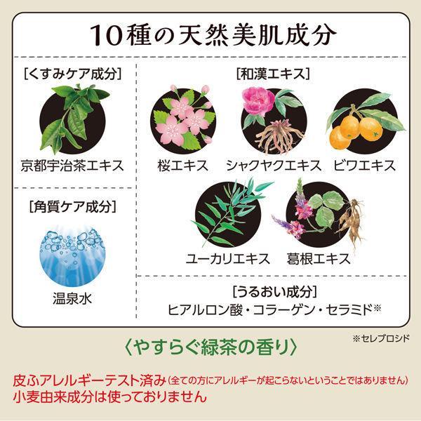 泡立てれば泡立てるほど弾力のある贅沢泡に。●天然由来成分配合で、うるおいを守りながら、お肌の余分な汚れを落として透明感のある肌へ導きます。●やすらぐ緑茶の香り。●吊るして保管できる泡立てネット付き。●くすみ※1ケア成分:京都産宇治茶エキス●うるおい成分:植物性プラセンタ※2、ヒアルロン酸、コラーゲン●天然保湿成分:桜エキス、シャクヤクエキス、ビワエキス、 真珠エキス※3、葛根エキス、米セラミド※4※1:たまった古い角質・皮脂汚れ※2:メロン胎座エキス※3:加水分解コンキオリン※4:グルコシルセラミド