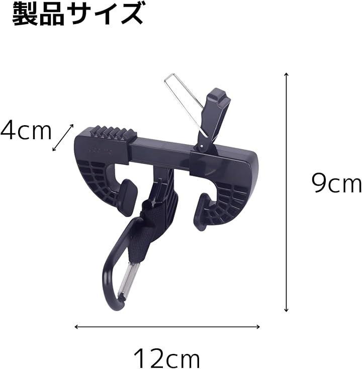 「便利なカラビナ付きで簡単取り付け」 丈夫なカラビナ付きデザインで、リュックやバッグ、ハンガー、ポールなどにワンタッチ装着。