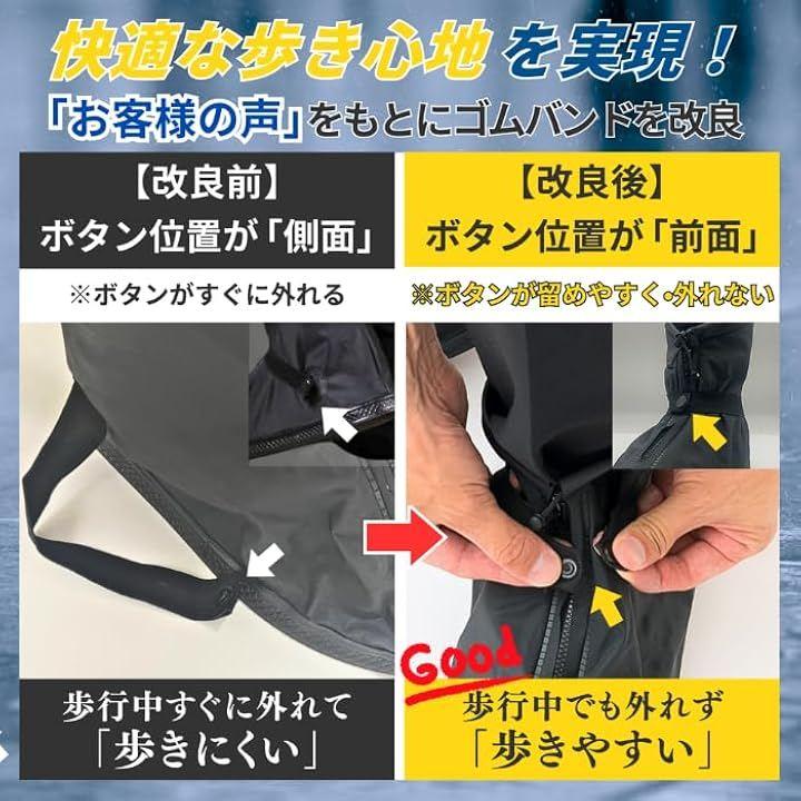 「靴のまま履きやすく脱ぎやすい」急な雨や雪でも靴を履いたまま一瞬で簡単に装着、脱着できるように間口が大きく開くチャックを採用しており手間なく快適に使用できます。