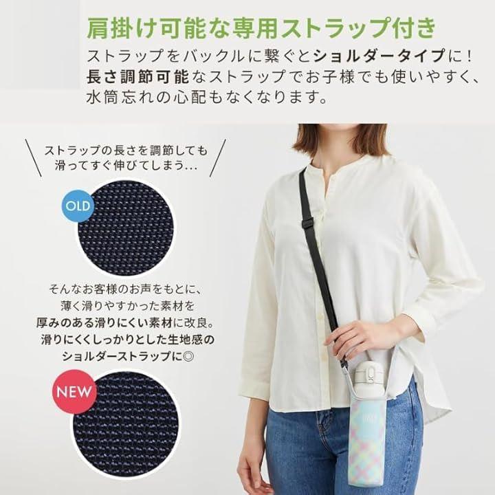 「仕様」 サイズ:約 高さ20cm(持ち手を除く)x直径約7cm、重量:約40g 対応サイズ~600ml水筒・ペットボトル。