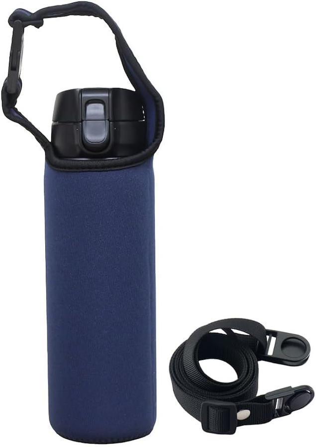 「伸縮素材でボトルにぴったりフィット」 ネオプレン素材を採用し、500~600mlのペットボトルや水筒にしっかりフィット。