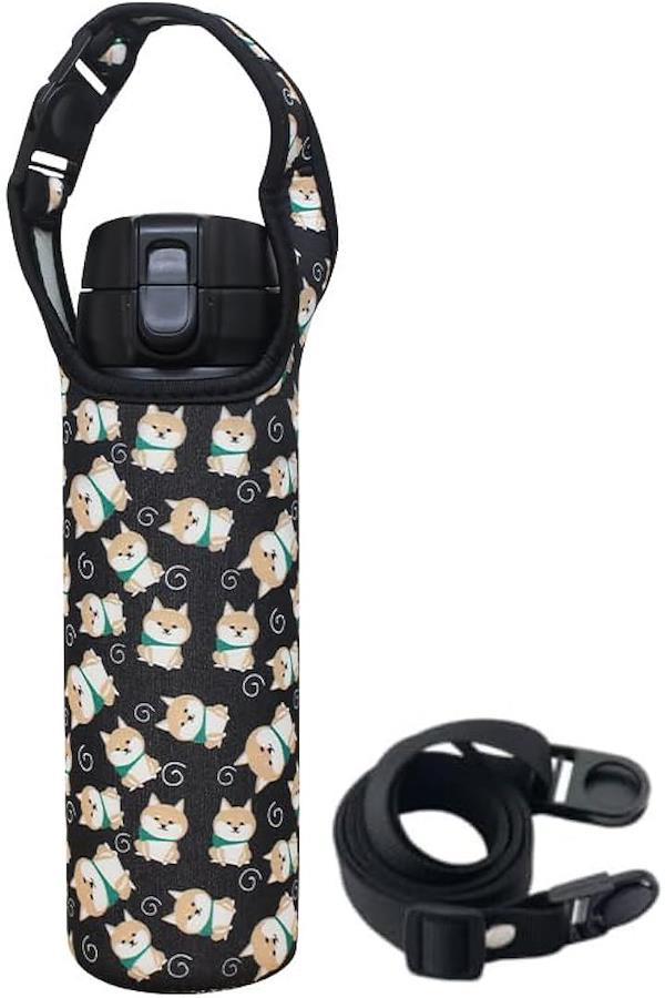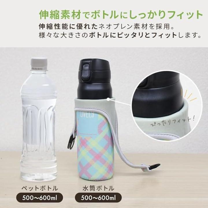 「伸縮素材でボトルにぴったりフィット」 ネオプレン素材を採用し、500~600mlのペットボトルや水筒にしっかりフィット。