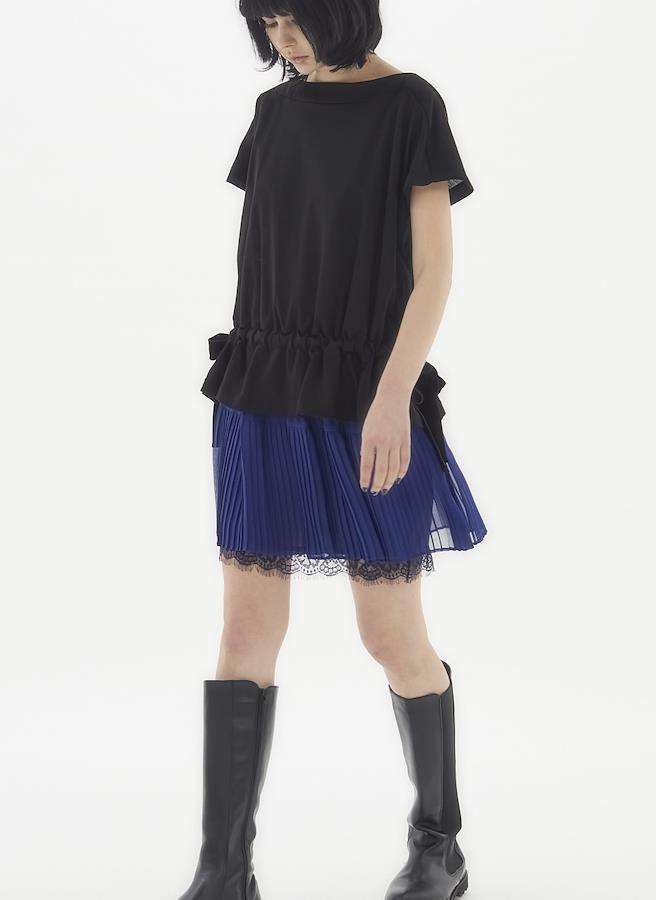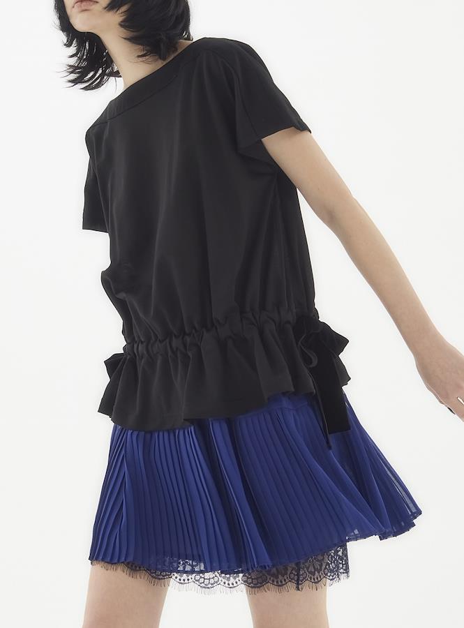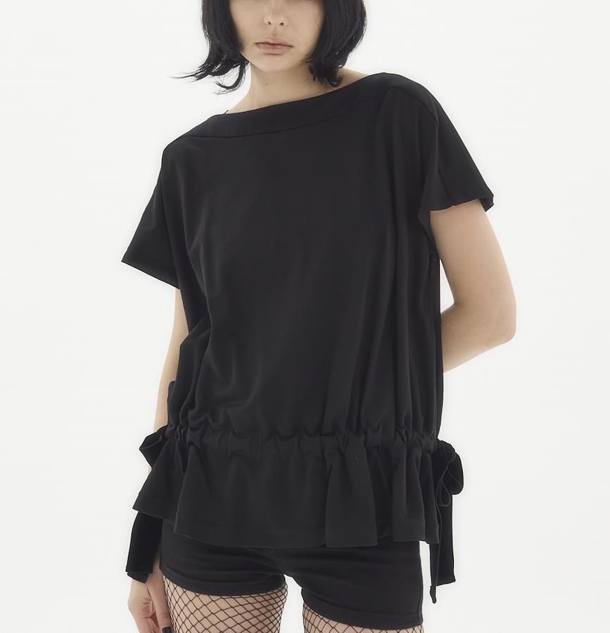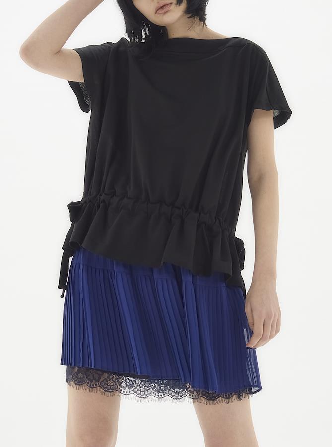 リヨセル素材の滑らかな肌触りが特徴のブラウス。ウエストのリボンを調節することで、ギャザーの分量を変えられ、シルエットの変化が楽しめます。