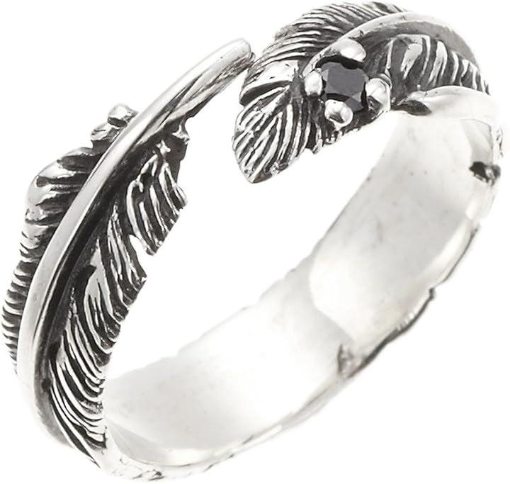 リアルフェザーモチーフにキュービックジルコニアを1粒乗せたシンプルなリング。