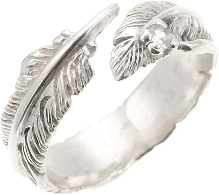 リアルフェザーモチーフにキュービックジルコニアを1粒乗せたシンプルなリング。