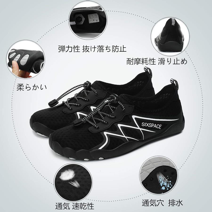 クロージャータイプ プルオン 「ソール」:ソールは滑り止めのゴムです。だから、水、ジム、ビーチで楽しみを持つことができます。ソフトで柔軟です。「裏地」:ポリエステル+スパンデックス。そのため、吸湿性や速乾性が良い、足の爽やかさを保てます。「履き心地がいい」:私たちのマリンシューズのアッパーにはネオプレーンを採用することで、優れた伸縮性と排水性と通気性が期待できる。また、ソックスのような柔軟性で、履いても素足みたいな履き心地。マリンシューズ(アクアシューズ)を履くことによって、岩場や磯、サンゴ礁帯のビーチ、砂浜など、足元の環境に関係なく安全にマリンレジャーを楽しむことが出来ます。また、シューズタイプはビーチサンダルのように簡単に脱げてしまうこともなく楽チンです。このウオーターシューズは多くの用途があります。水遊び、海水浴、散歩、お出掛け、アウトドアシーン、マリンレジャーや川遊び、サンダル、ウォーターパーク、ビーチ、マリンスポーツやダイビング、シュノーケリング、室内スポーツや、ジムなどでもランニングシューズ、ガーデニング、車の洗浄など、幅広い分野で使える!