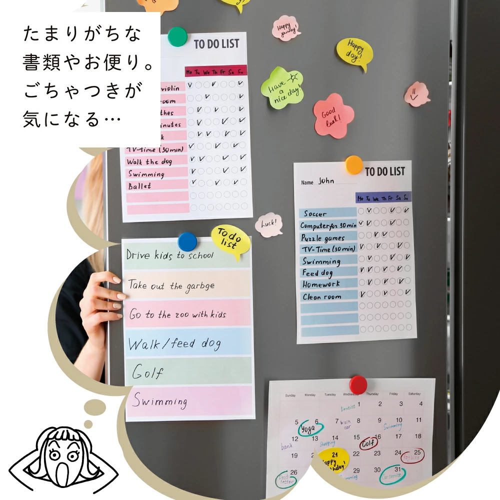 【商品情報】●冷蔵庫のドアをスッキリ整理!●冷蔵庫につい貼りがちなプリントやおたよりなど、異なるサイズの書類をひとめとめに収納●インテリアになじむスタイリッシュなデザインで生活感をリセットします●ペンを1本はさめるボックス●上からサクッと出し入れしいやすい大容量ポケット●小さい紙類も取り出しやすい浅めのポケット●バラバラとめくって閲覧できるヨコ入れポケット(4枚/8ページ)●裏表紙の内側にA4書類を1枚はさめるフラップ付き