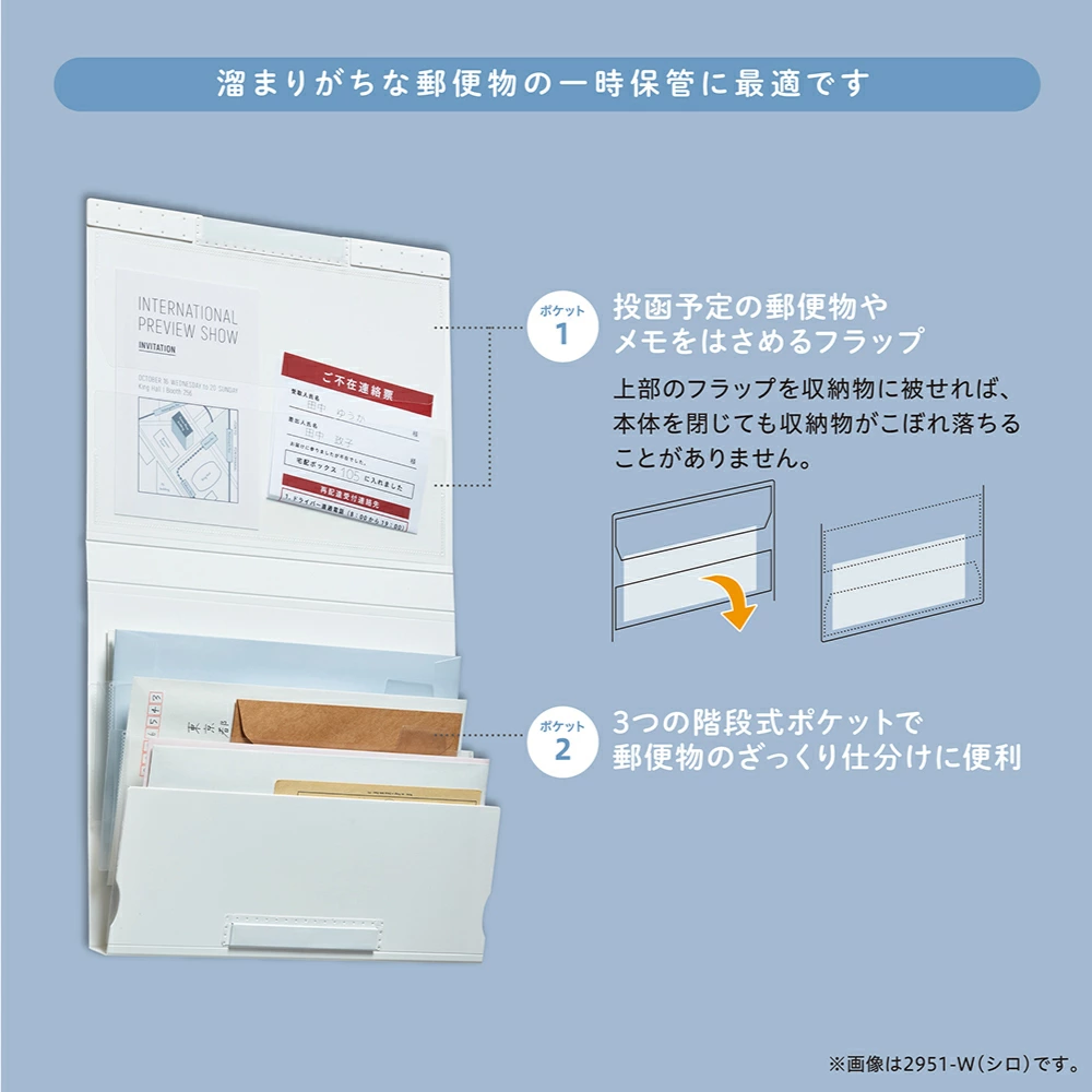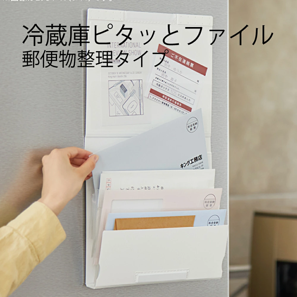 【商品情報】●冷蔵庫のドアをスッキリ整理!●かさばる封筒や郵便物をそのまま入れてなくさない●投稿予定の郵便物やメモをはさめるフラップ●3つの階段式ポケットで、郵便物のざっくり仕分けに便利●インテリアになじむデザイン(表紙を閉じて生活感をすっきりと隠すことができます)●3つの階段式ポケットはインデックス付※ラベルは付属しておりません●