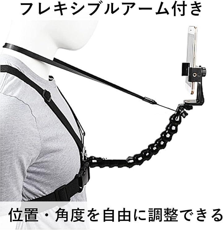 ・「フレキシブルアームが自由な角度調整を実現」通常のチェストマウントとは異なり、フレキシブルアームが付いたタイプとなります。