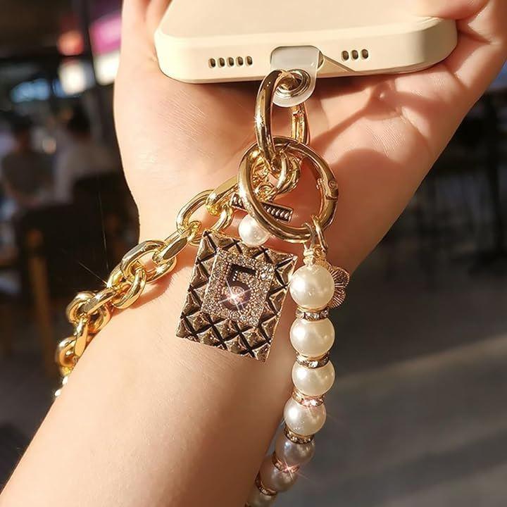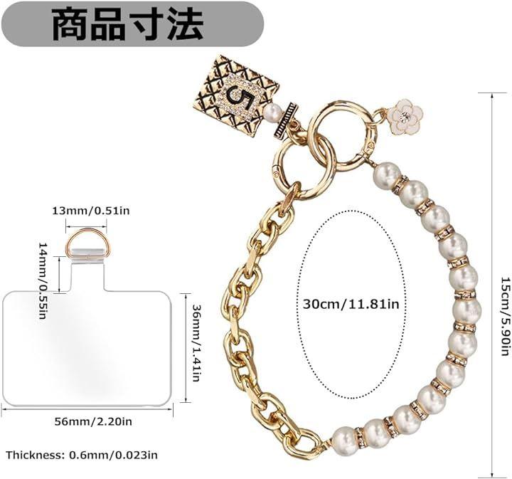 このスマホリストストラップは良質な人工真珠+キラキラダイヤモンドリング+金属チェーンから構成され、丈夫さと耐久性をアップさせるだけでなく、美しい真珠と丈夫な金属の要素を組み合わせて、スマホの美しさに影響を与えない状態でパールのユニークな雰囲気が流れていて、可愛くておしゃれを感じます。