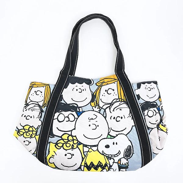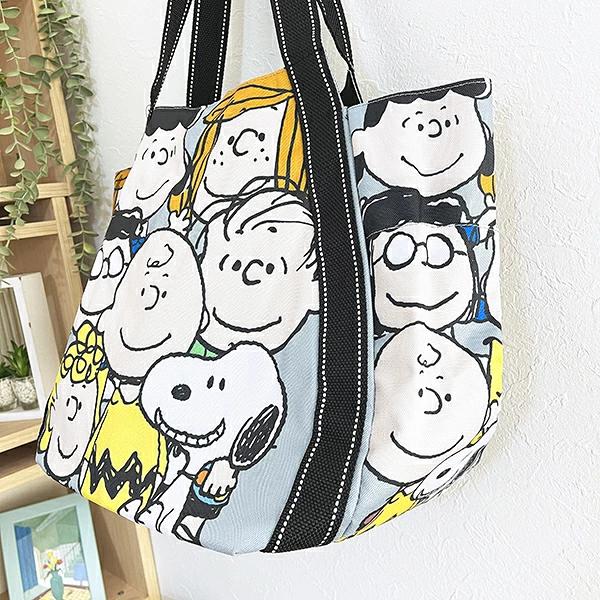 スヌーピーの仲間たちがデザインされたバルーントートバッグです。大容量なので荷物の多いママさんにもおすすめ♪内ポケット付きなので普段使いにもぴったり☆通勤・通学やマザーズバッグとして大活躍間違いなしのアイテムです♪