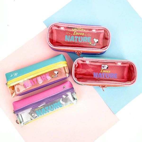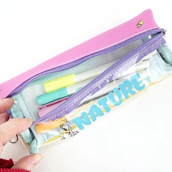 両面チャックで2ポケットあるので、分けて収納できるのが便利です。クリア部分もありオシャレで中身が見えて一石二鳥!!
