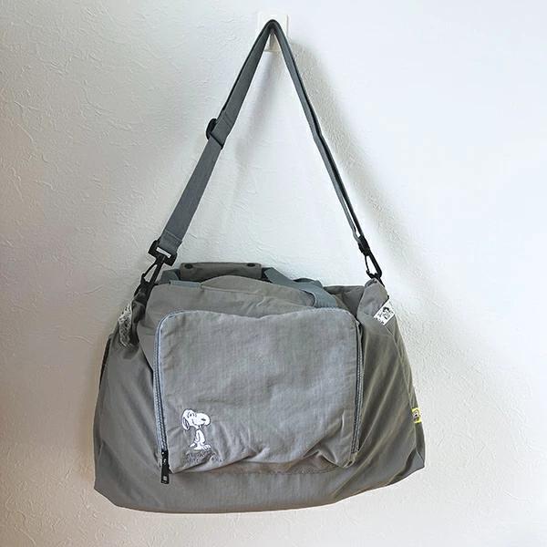 ピーナッツデザインのトートバッグ♪フロントポケットに折りたたんで収納できるパッカブル仕様になっています。軽量で丈夫で旅行などでも便利なコンパクトに持ち運びができます♪用途多様の3wayです。