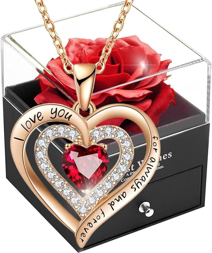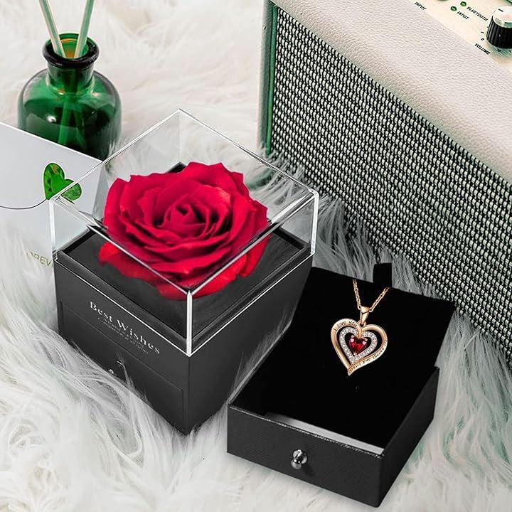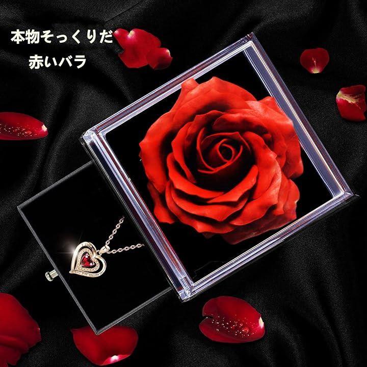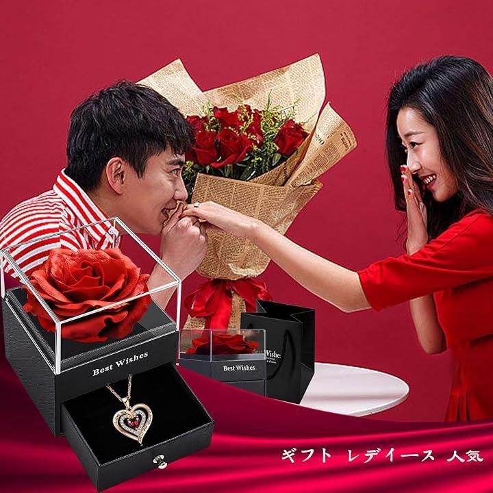「セット内容」ソープフラワーバラのボックスx1、S925銀ネックレスx1、パッキングx1.大輪の薔薇とレディースネックレスを組み合わせましたローズボックスプレゼントセット。
