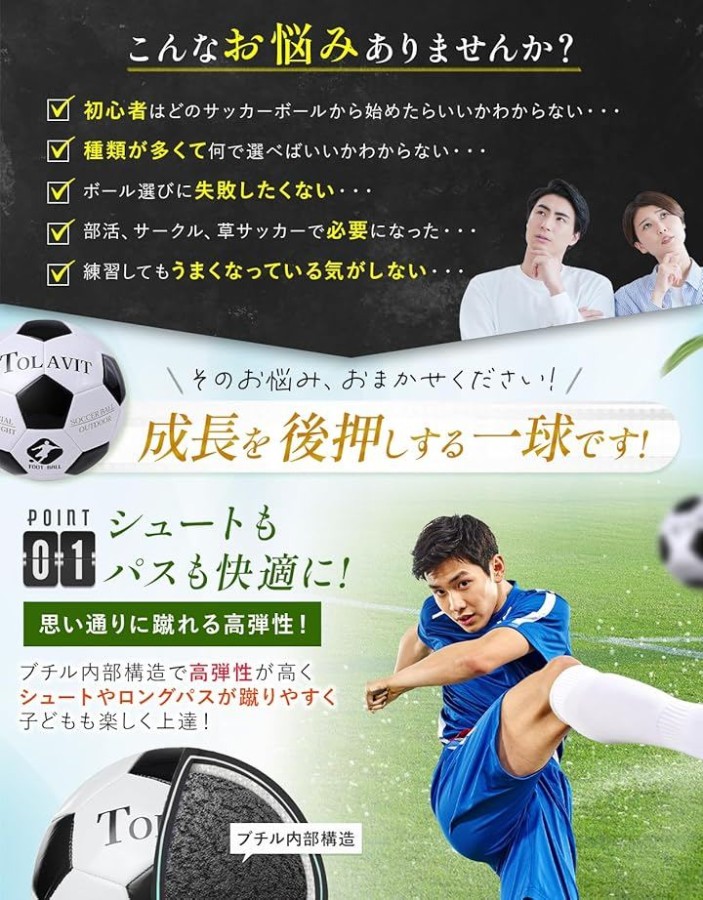TOLAVIT soccer ballは、子供用・小学生向けの練習ボールとして、楽しく成長をサポートします。