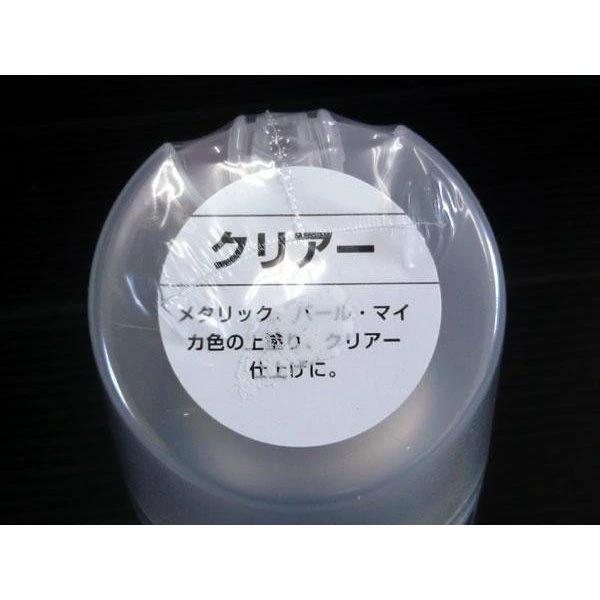 メタリック、パールマイカ色のボデーペンで塗装した後の上塗りに使用する透明の塗料です。