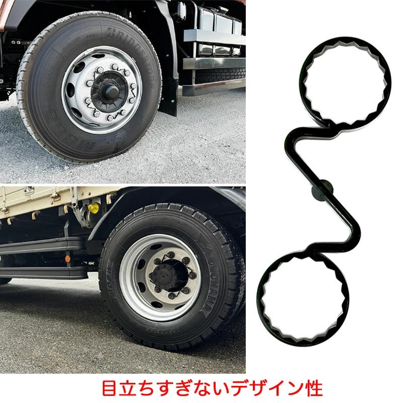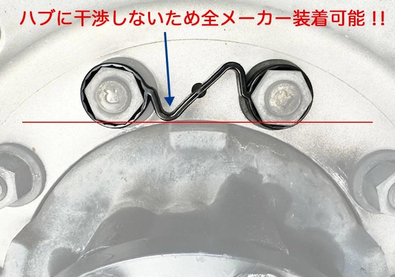 [改良点]柔らかい素材を採用し角を丸めたことにより脱着しやすい運行前の打音点検の簡略化が可能ハブに干渉しないため全トラックメーカーの車両に対応目立ちすぎないデザイン円錐型のマーカーにより裏表が分かりやすい