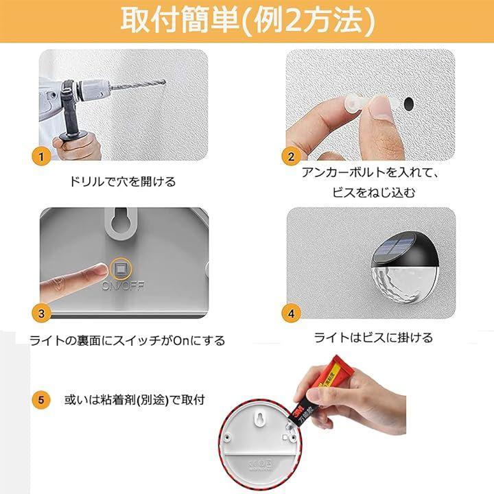 「明暗センサー」光感知機能付きで、背面のスイッチを入れて設置したい場所に設置するだけで、他の操作は必要ありません。