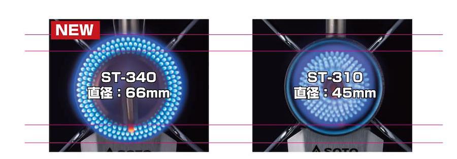 【ST-340】 ・外形寸法 /幅166×奥行142×高さ110mm(使用時・本体のみ) 幅140×奥行70×高さ110mm(収納時) ・重量/ 360g(本体のみ) ・発熱量/※1 3.3kW(2,800kcal/h) ・使用時間/※2 約1.4時間(ST-760 1本使用時) ・使用容器/ SOTO製品専用容器(ST-760、ST-700) ・点火方式 /圧電点火方式 ・材質 /バーナー・器具栓つまみ・ゴトク:ステンレス、ボンベホルダー・点火スイッチ:樹脂 ・付属品/ 収納ポーチ ・備考/ ボンベは別売です。 ※1 気温25℃無風状態で点火後から5分間の燃焼データより算出。 ※2 気温25℃無風状態で点火後から30分間の燃焼データより算出。 ・屋外使用専用です。【ST-3105】 ●外形寸法直径8×長さ90mm(1本) ●重量2g(1本) ●材質シリコンゴム【ST-3401】 ●外形寸法(展開時)/幅376×奥行153×高さ95mm ●外形寸法(収納時)/幅300×奥行153×高さ33mm ●重量/約600g ●材質/アルミニウム(トップボード、スタンド)、 ステンレス(トッププレート、スタンド) ●付属品/スタンド抜落ち防止ストッパー :サイズ/幅158×奥行23×高さ9mm・重量/9g・材質/樹脂