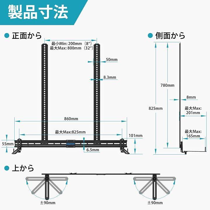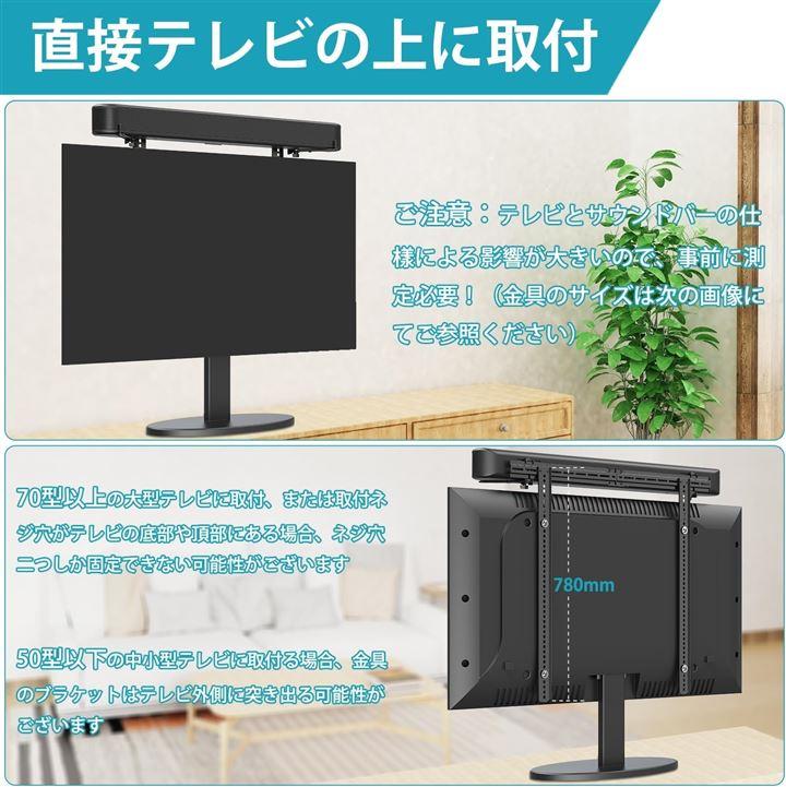 「長いブラケット」他のサウンドバー金具と比べて、取付ブラケットが780mmまで延長されており、大型テレビに適しています。