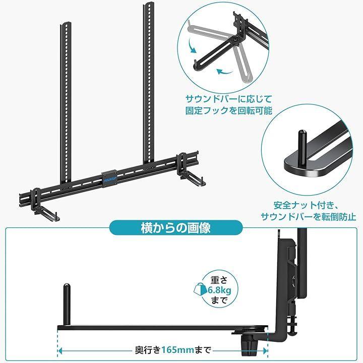 「回転フック付き」サウンドバーを載せるフックは90°回転機能付き、サウンドバーのサイズに応じて柔軟に調整できます。