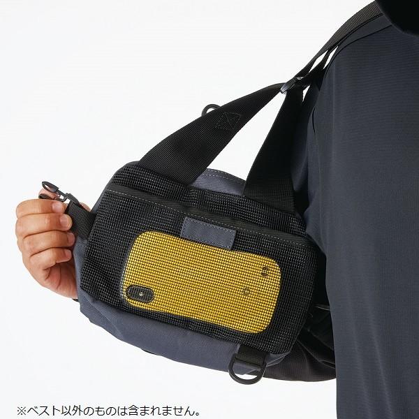 ソルト、フレッシュ問わず幅広いショアフィッシングに対応。ウエスト膨張式ライフベストに合わせやすいライトなゲームベスト。本体は摩耗、引裂きなど耐久性に優れたコーデュラ素材。収納ケースが見やすくロッドアクションを妨げない横向きのメインポケット。左右ポケット:VS-906(SFCマルチL)サイズ×2 計4ケース収納可能。ファスナーは錆や腐食に強いビスロンファスナー、裏生地は通気性を確保するメッシュ仕様。右メインポケットの左フラップにはジグヘッドやスナップなど保持可能なマグネットを内蔵。左フラップポケットはカットしたラインを収納するダストポケット。台形のバックパックはファスナー開閉しやすいコンパクト設計。バックパック下のランディングシャフトホルダーにはアジャスターバックルを採用し幅広いサイズに対応。 サイズ:フロントポケット:W22×H14×D6cm、背面ポケット:W26cm/30cm×H20cm×D9.5cm、サイドベルト:MAX35cm×2 カラー:チャコール 素材:ポリステル100%(CORDURA) ※実物と色が違って見える場合があります。あらかじめご了承下さい。