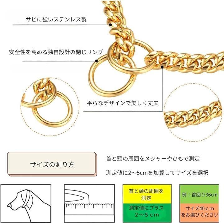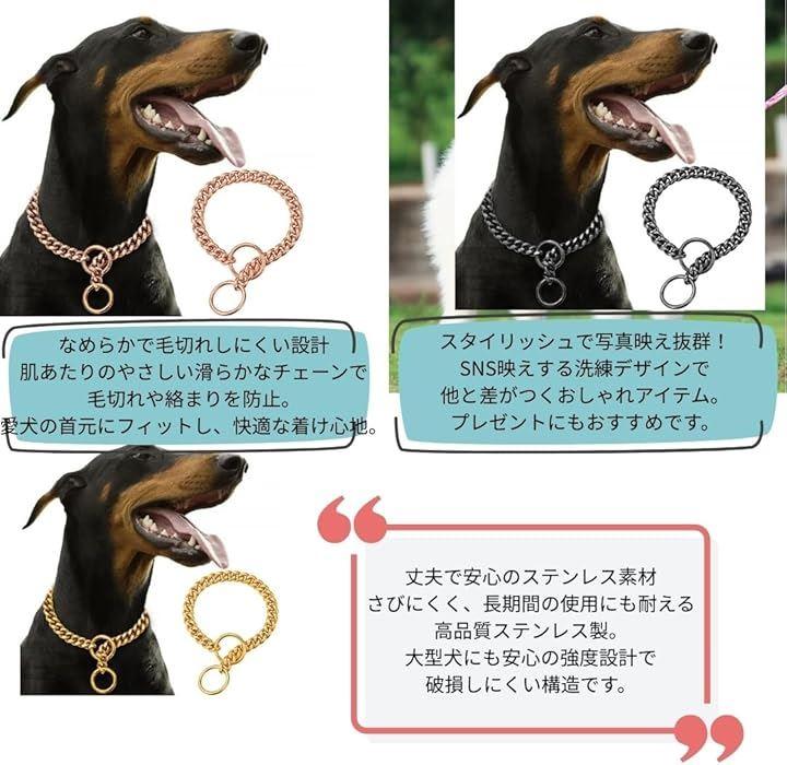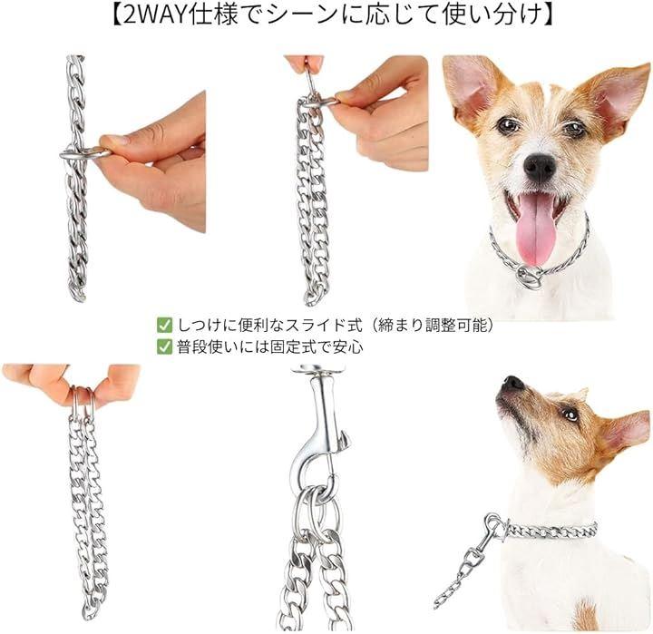「耐久性に優れたステンレス製チェーン」このチョークチェーンカラーは、耐摩耗性と耐久性に配慮して設計されたステンレススチール製。