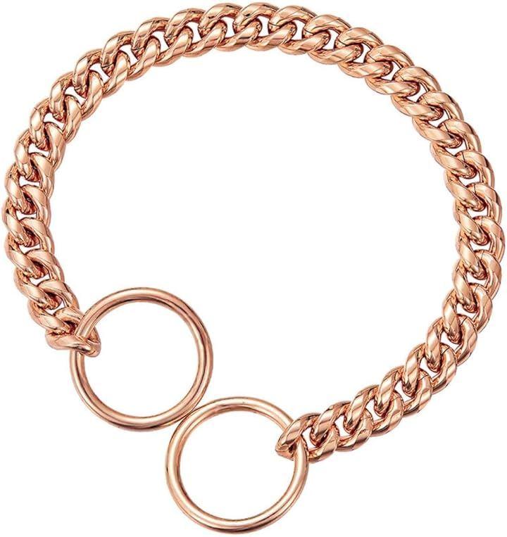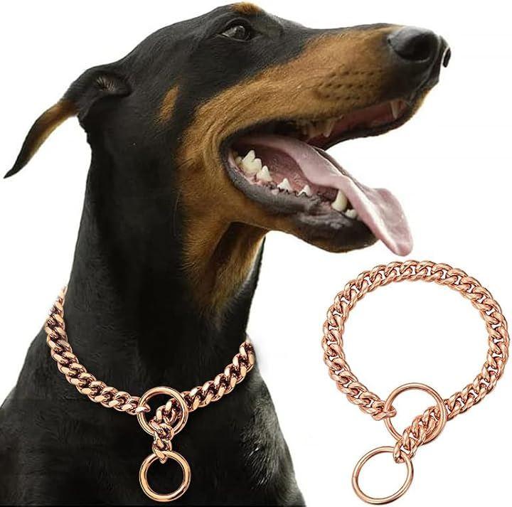 チェーン本体はしっかりとした重量感があり、中型犬や大型犬の散歩やトレーニングに役立ちます。