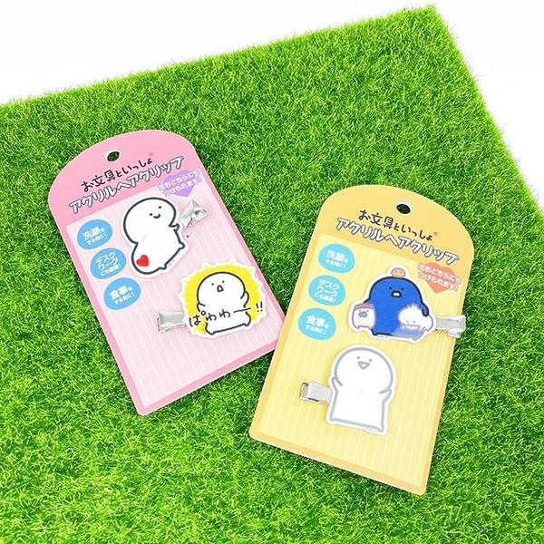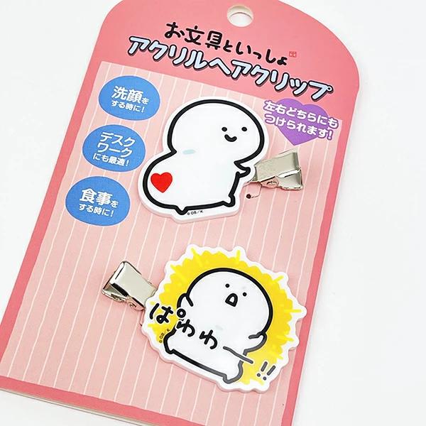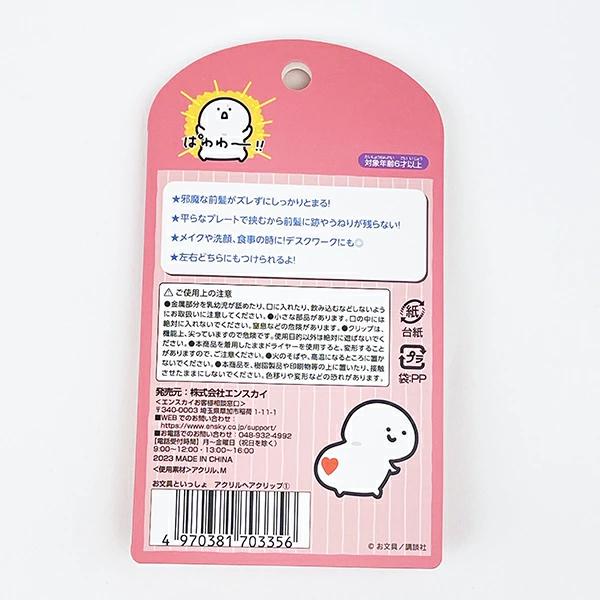 お文具さんとその仲間たちの日常を綴ったのキャラクター『お文具といっしょ』のアクリルヘアクリップです♪左右どちらにも付けられます。洗顔するときや、デスクワークにも最適☆平らなプレートで挟むから前髪に跡やうねりが残らない!