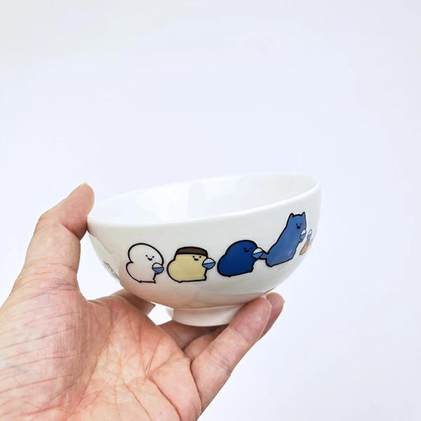 お文具といっしょがごはんを持って集合しているデザインのお茶碗です!くすっと笑ってしまうデザインで子供も楽しく食事が出来そう♪箱に入っているので、ギフトにもぴったりですよ☆彡