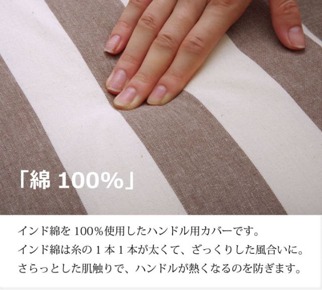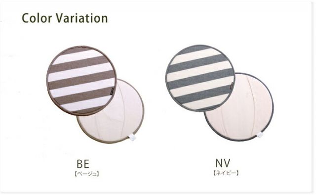 シンプルなボーダー柄をネイビーとベージュのベーシックな色で仕上げた車のハンドルカバーです。シンプル・ベーシックをコンセプトにデザインしました。性別を問わず、また幅広い年齢の方にお使い頂ける商品です。生地は高品質なインド綿を使用しています。太番手の糸でざっくりと織り上げ柔らかな風合いです。サラッとした肌触りなので年間を通してご使用頂けます。日よけ、汚れ防止のハンドルカバーですが、運転中は座席の上に置いてクッションとしてもご使用頂けます。また、チェアパッドとしてもご使用頂けます。中材にはウレタン10mmを使用しておりますので適度なクッション性があります。