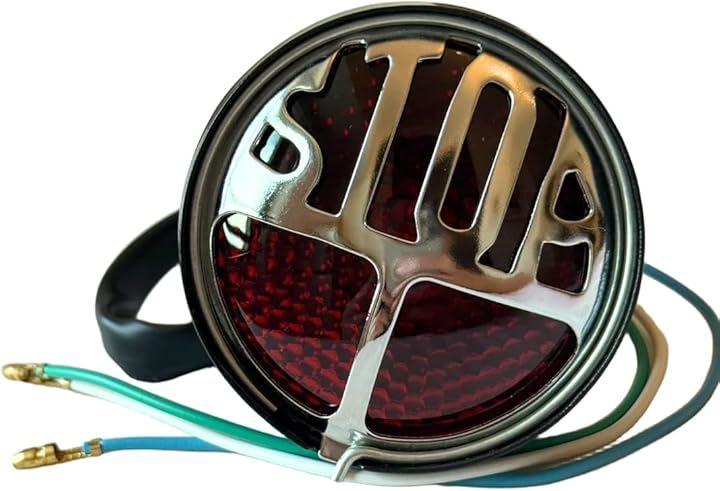 ヴィンテージ感あふれるSTOPデザインを採用した、レトロスタイルのバイク用テールランプです。