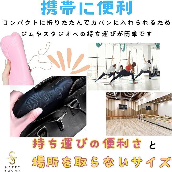 「携帯に便利なコンパクトサイズ」コンパクトに折りたたんでカバンに入れられるため、ジムやスタジオへの持ち運びが簡単です。