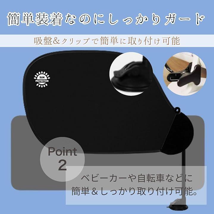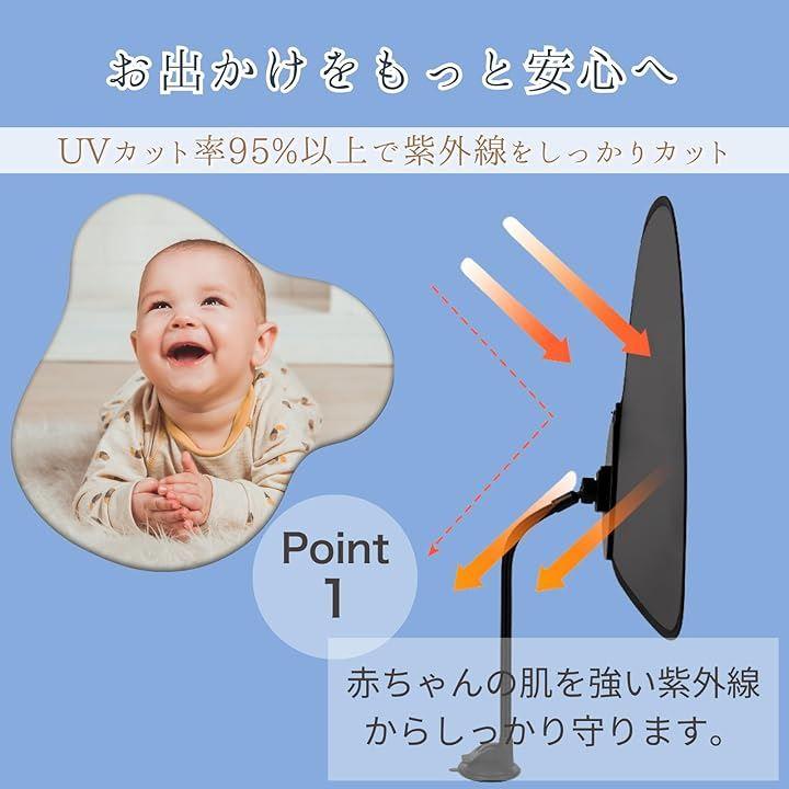 「UVカット率95%以上で紫外線をしっかりカット」UVカット率は95%以上で、赤ちゃんの敏感な肌を紫外線から保護します。