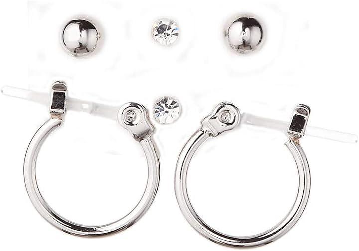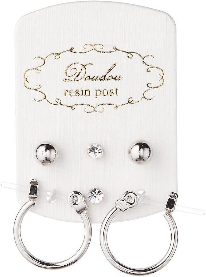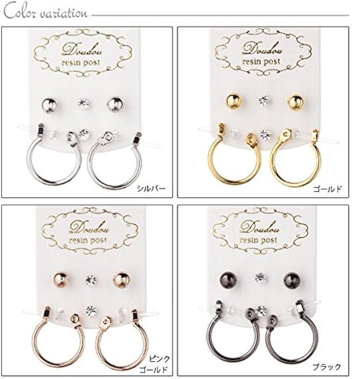 小さなフープピアスとストーン、メタルボールペアの6点セットピアスです。